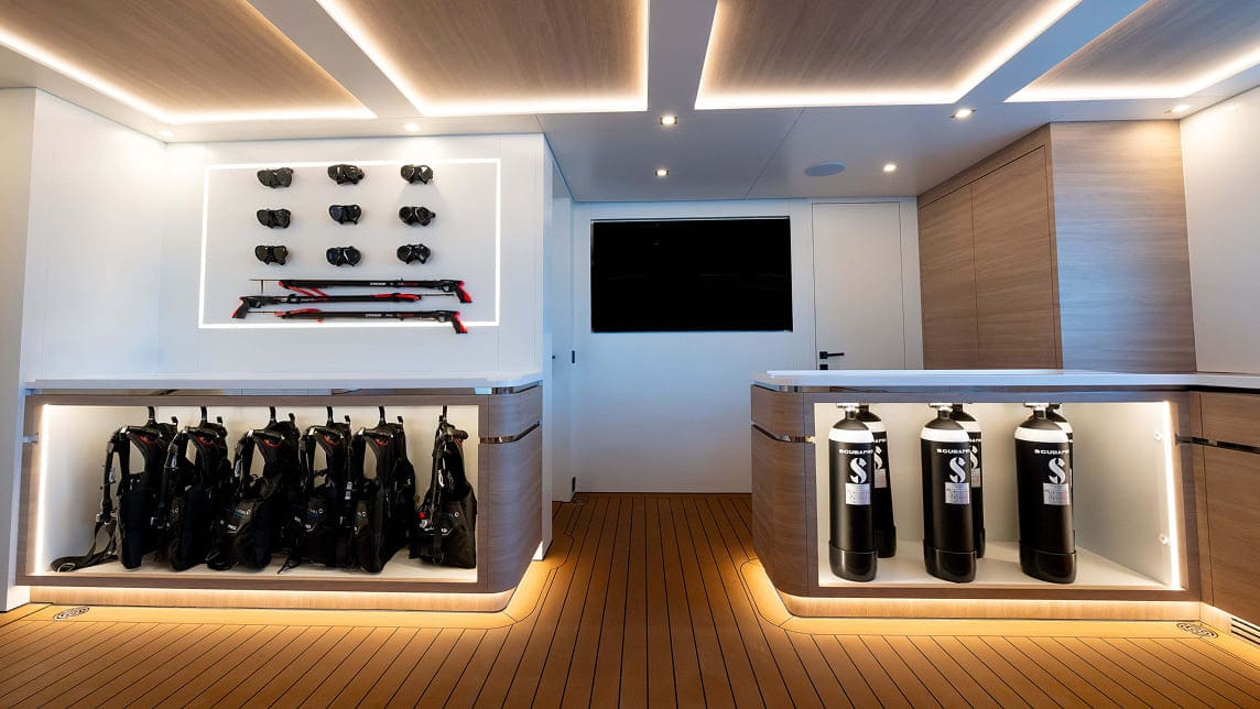 LIMERENCE is a 52.5-metre yacht, delivered in 2025 by Alia Yachts. Designed by Azure Yacht Design, her interiors balance elegance and comfort across three spacious suites for eight guests, supported by a dedicated crew. Expansive decks create versatile spaces for dining, lounging, and entertainment, while her beach club provides direct access to the sea. With a 4,000-nautical-mile range, she is equally suited to Mediterranean escapes or adventurous crossings. A wide collection of water toys, from jet skis and seabobs to sailing dinghies and waterslides, ensures unforgettable days immersed in the ocean.