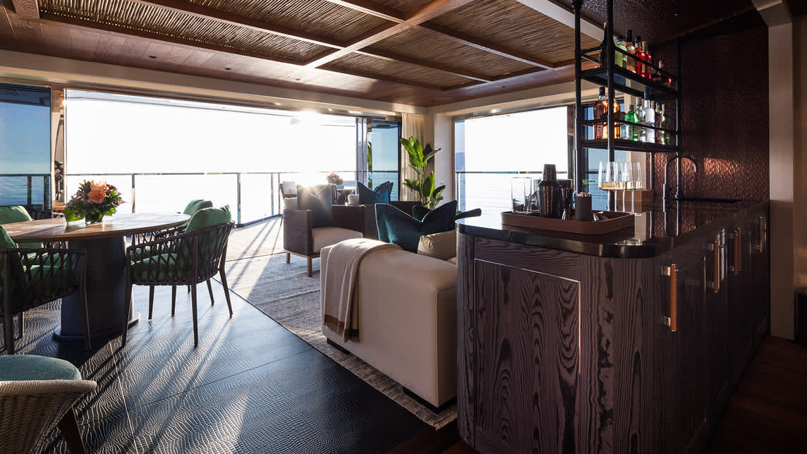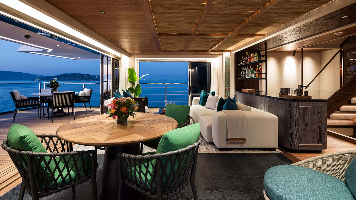 King Benji charter yacht is a 47-metre vessel accommodating 10 guests across 5 suites. She is available for charter in the Mediterranean during summer 2025 and in the Caribbean during the winter season.