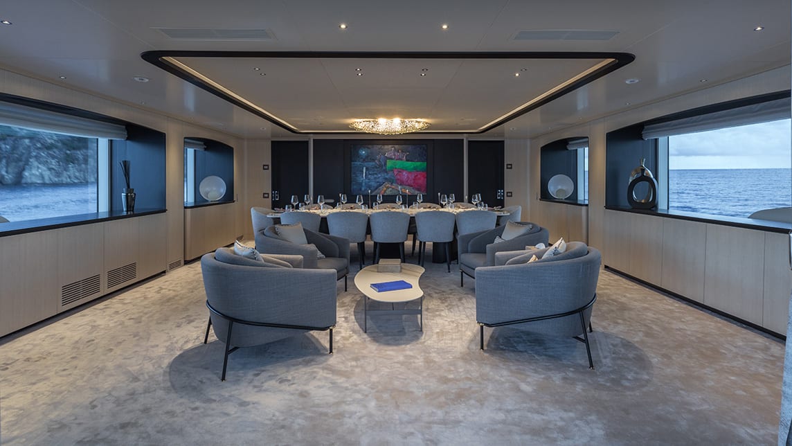 The 44-metre Benetti WATERCOLOURS is a yacht for charter that blends modern design with exceptional comfort. Delivered in 2022, she welcomes up to twelve guests in five stylish cabins, including a full-beam owner’s suite complete with its own office and dressing room.