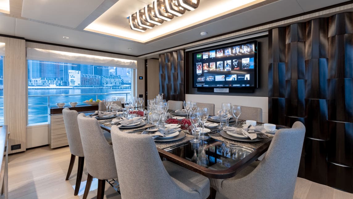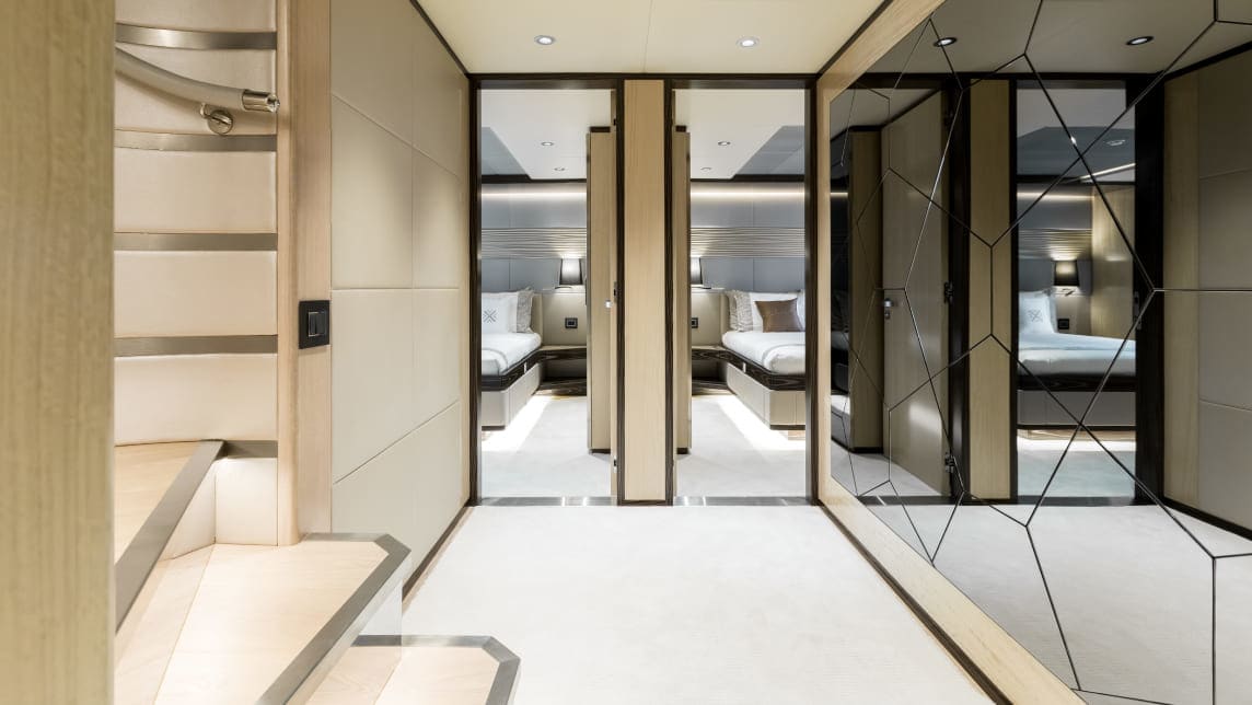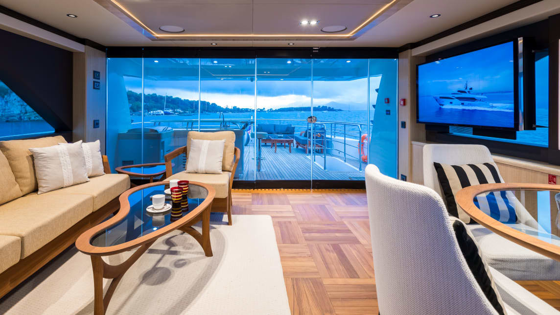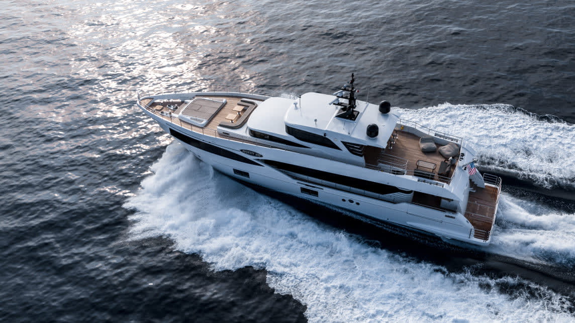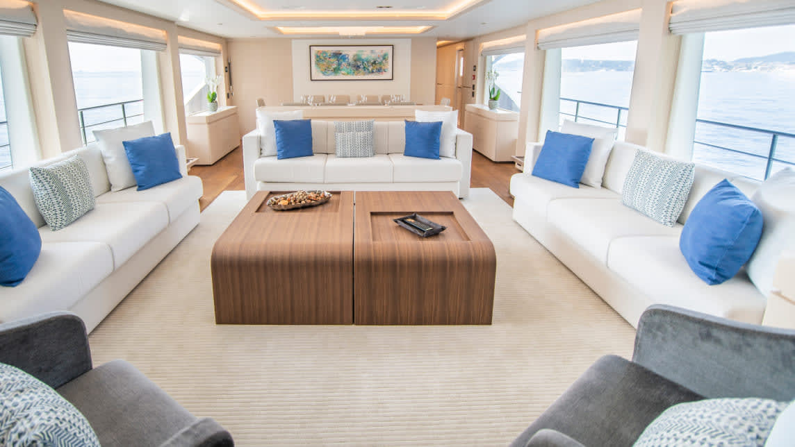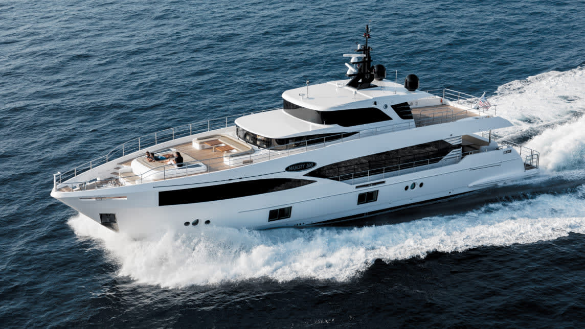 The Majesty 100 has been gaining worldwide attention since her launch, as she stands out for her distinctive enclosed sky lounge and a powerful yet efficient propulsion system. With opulent interiors and generous lounging spaces, this yacht elevates owners to superyacht status. Her timeless exterior design and uncompromised naval engineering are complemented by exquisite interior craftsmanship. The yacht boasts numerous lounging and sunbathing areas, perfect for relaxing after a day filled with watersports and exploration.