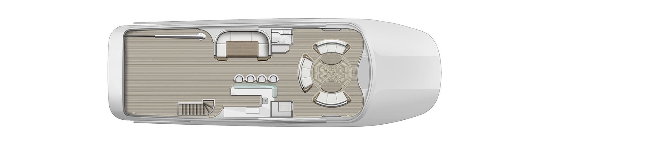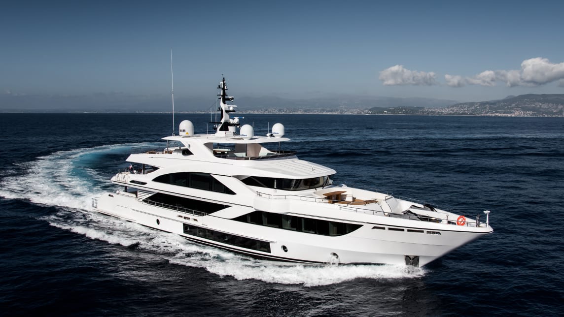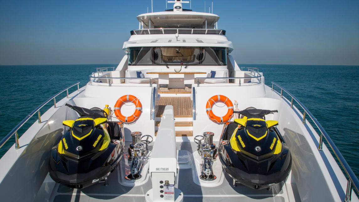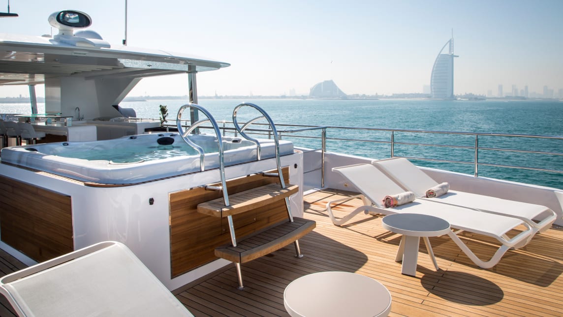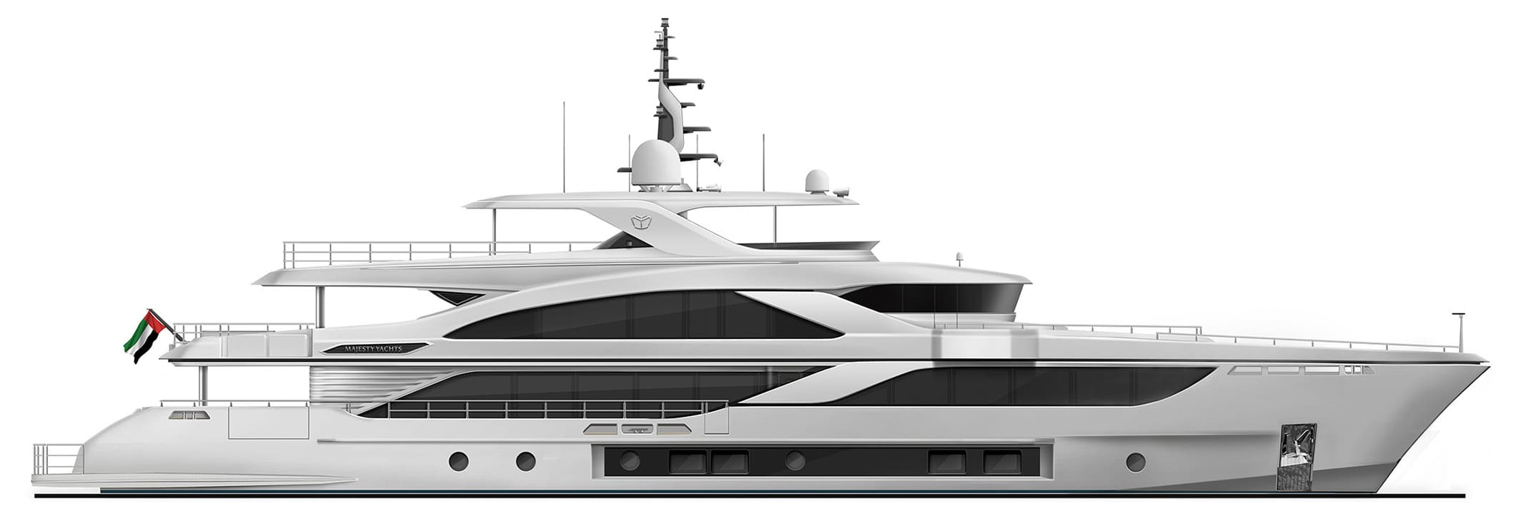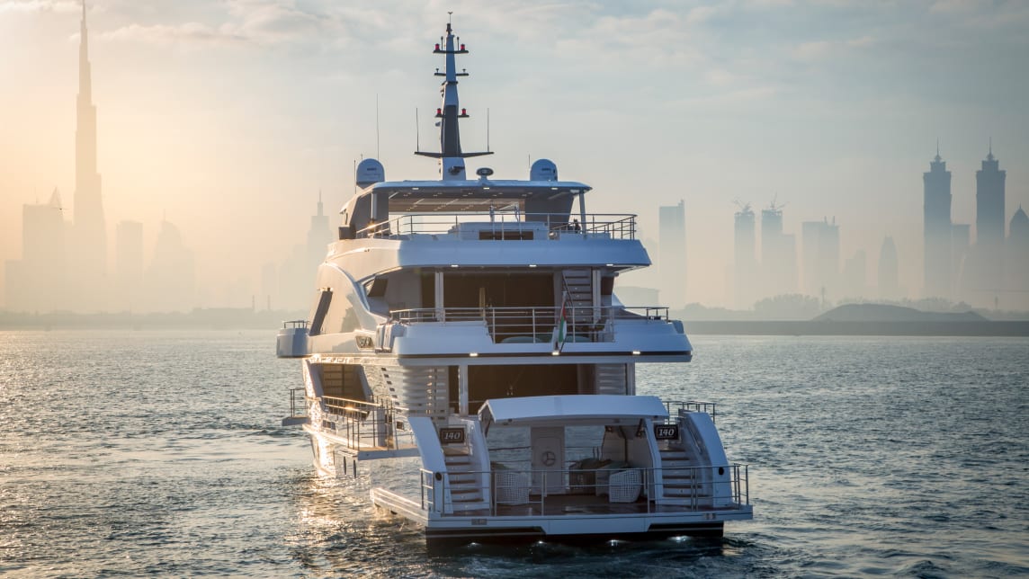 Spanning 43 meters, the Majesty 140 boasts plenty of luxurious features such as the expansive beach club, a waterfall cascading from the top deck into the Jacuzzi, and 2 aft balconies located on the main deck, perfectly crafted to elevate your experience onboard.