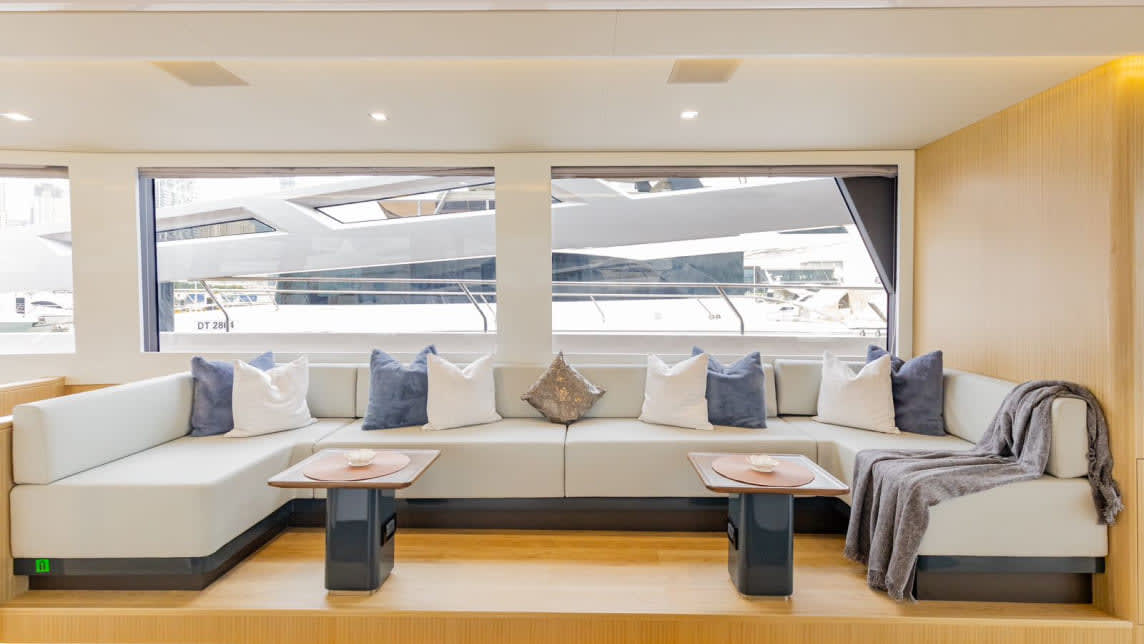 She is equipped with expansive decks perfect for sunbathing, entertaining, and dining al fresco, offering ample space for guests to move comfortably