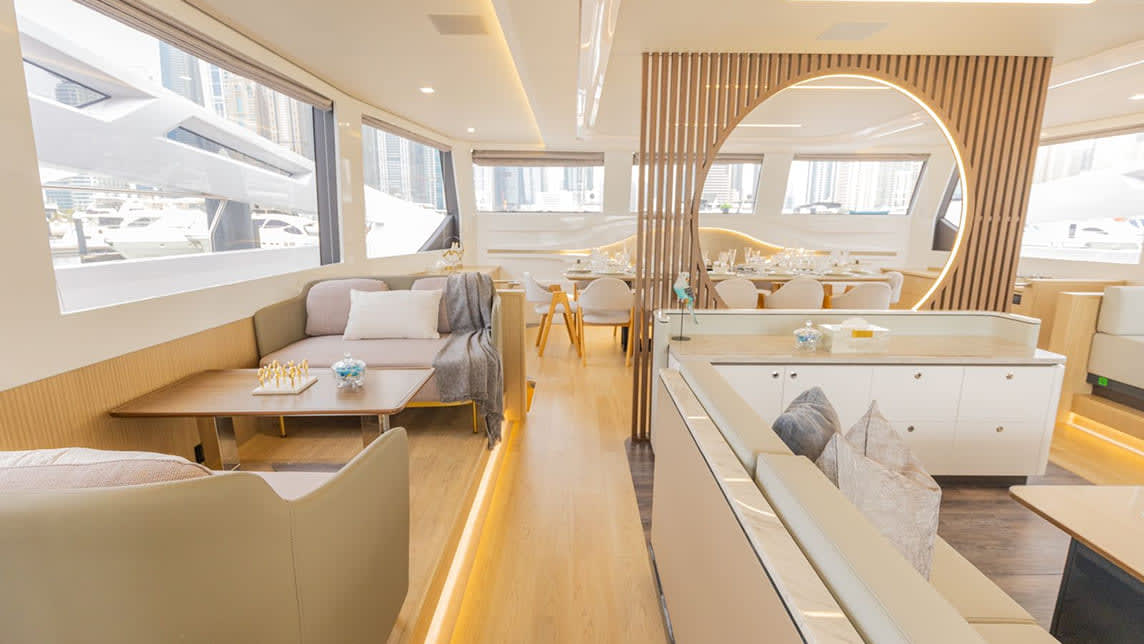 With a capacity for up to 40 guests, Infinity is ideal for private celebrations, corporate events, and relaxing cruises along Dubai’s coastline. The yacht features a sleek, modern design with expansive deck areas perfect for socialising and taking in the breathtaking views. Inside, Infinity offers two well-appointed cabins, a fully equipped kitchen, air conditioning, and a state-of-the-art sound system to enhance the onboard experience. A professional crew ensures a seamless and enjoyable journey.