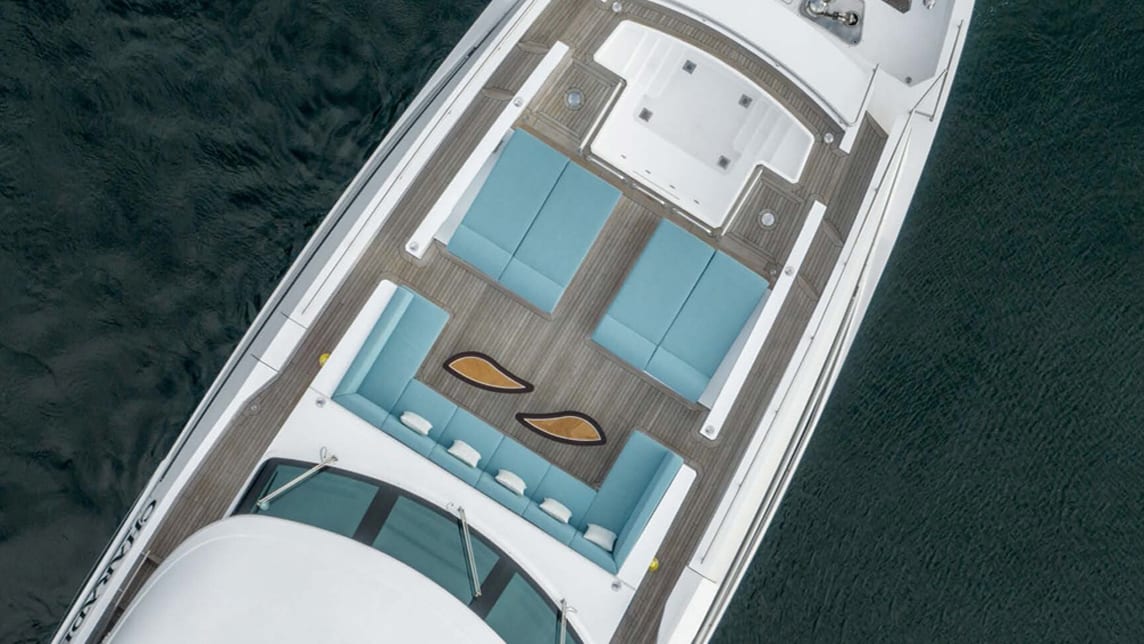 The yacht’s design highlights include natural light-filled modern interiors, plush seating, a sky lounge with entertainment options, outdoor dining, a beach club, and a Jacuzzi with ocean views.