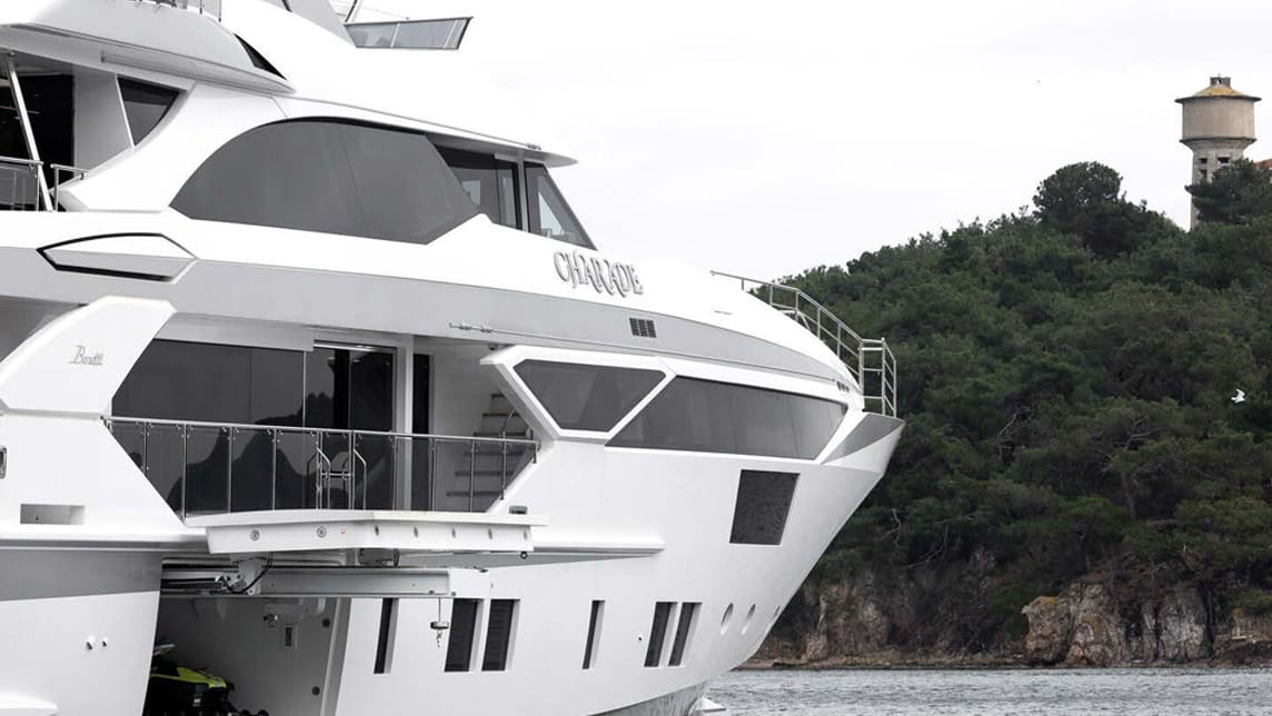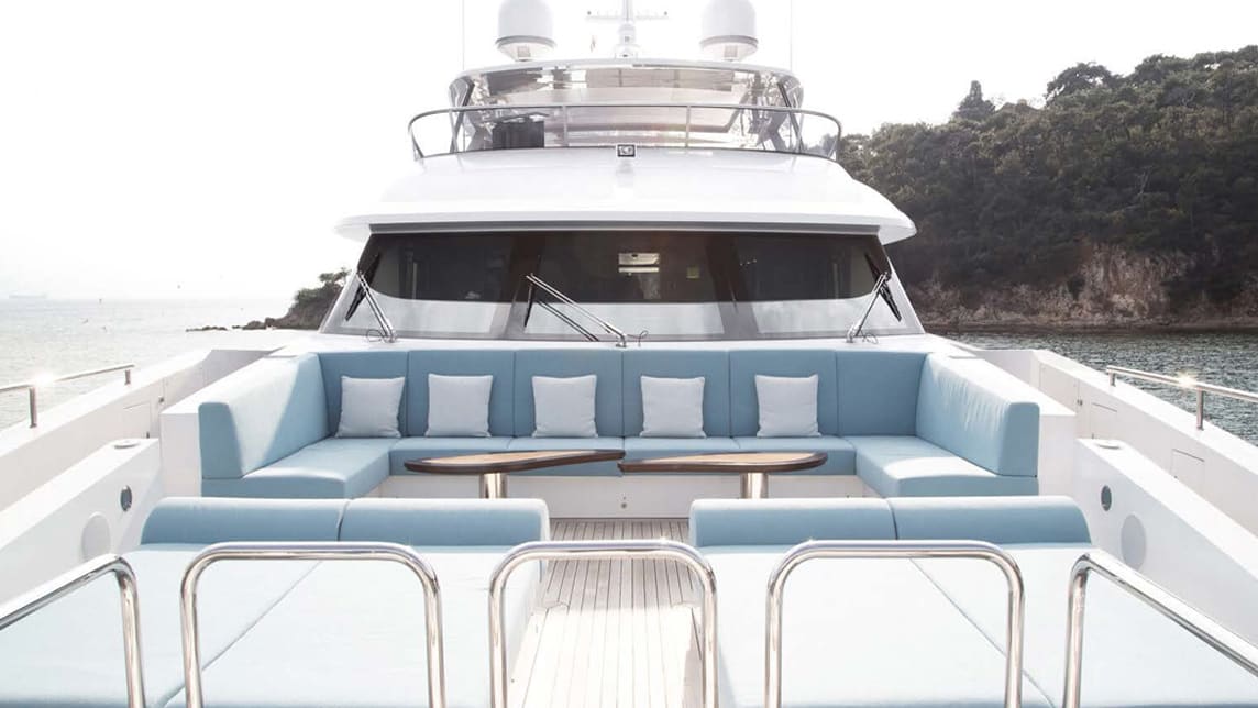 CHARADE, 38.1 m, Benetti. Crafted by RWD, its contemporary interiors are serene and luxurious, balancing Stefano Righini’s sporty exterior.
