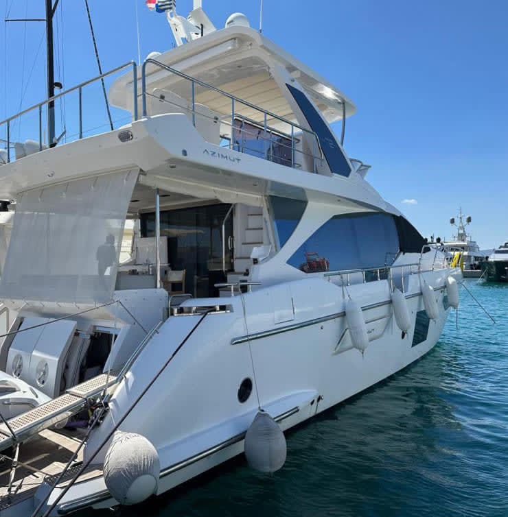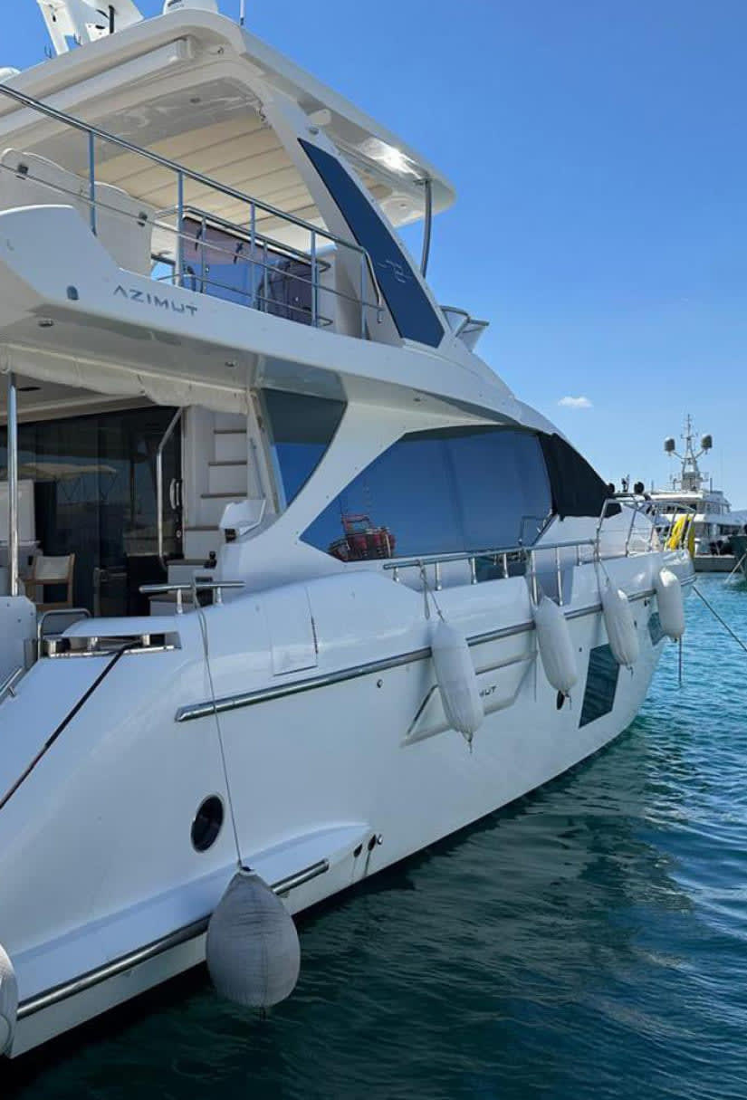 The Azimut Fly 72 is a luxurious 22.64m yacht, offering 4 cabins, powerful performance, and sophisticated design.